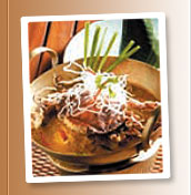 トムヤンクン(海老の辛酸っぱいスープ)やトムカーガイ(チキンのココナッツミルクスープ)などの伝統的なタイ料理の他、南タイの郷土料理もお召し上がりいただけます。タイ料理は健康食としてもおなじみですが、何部料理も同様にハーブや野菜を多用した健康食です。